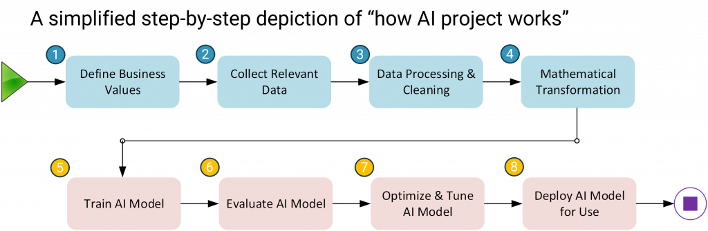 5.Train AI Model: It is making machines to learn based on mathematically transformed data to create AI engines known as ML Models.